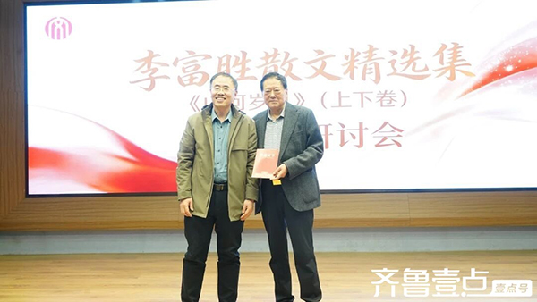 韩品玉会长围绕作品研讨作了总结性点评。他评价说,《山河岁月》是一部兼具思想性、艺术性与可读性的文学佳作。作品中既有对历史沧桑的深切感怀,对时代变迁的真实记录,也有对平凡众生的温情描摹,对亲情、友情、乡情的真挚抒发,彰显着作者“仁者爱人”的精神追求与悲悯的人文情怀。其文字质朴无华、温润厚重,不事雕琢却直抵人心,既展现了东方人文精神的深沉积淀,也传递着对生命本真的执着坚守,为当代散文创作提供了有益借鉴。他表示,《山河岁月》首发式研讨会的举办,既是对李富胜半生创作成就的一份肯定,也是散文写作领域的一件盛事,对挖掘地域文化内涵、推动散文创作繁荣、丰富群众文化生活,具有积极意义。