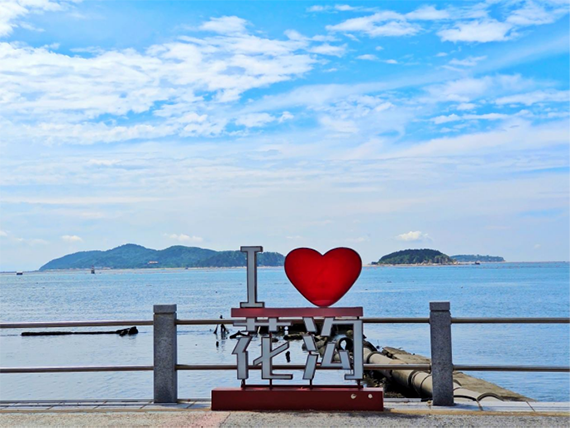 他们一路快行,到了花沟村口。一下车,路边墙上“温柔落日,浪漫花沟”八个大字,十分醒目。海边新设了“花沟”两个大字,字上面立着红心,紧挨着是一座月形设施,据说晚上灯光辉映,如同人间天堂。