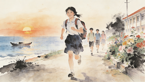 妻——一个十几岁的姑娘,每天来往于花沟这条路。放学时天天看晚霞漫天、太阳坠海。她说半辈子的日落西山和渔舟唱晚,都在花沟这一年享受到了。上课时,坐在军营教室听讲。课间或体育课,就到繁花似锦环绕的操场活动。节假日,有机会上影剧院、浴池、军人服务社。每天看日落、花开,眼界长,思维阔,她这祖国的“花朵”,的确得到茁壮而别样的成长。